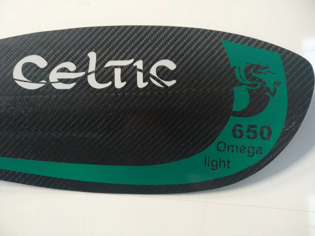 This paddle will have a carbon shaft and carbon Omega blades. The Nylon Leverlok joint offers adjustable length of 10cm and fully adjustable feather.